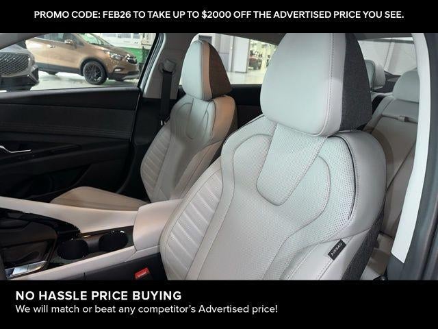 Elantra Limited is nicely equipped with Option Group 01, Elantra Limited, 4D Sedan, I4, CVT, FWD, Serenity White, Light Gray Premium Synthetic, 4-Wheel Disc Brakes, 8 Speakers, ABS brakes, Air Conditioning, Alloy wheels, AM/FM radio: SiriusXM, Apple CarPlay & Android Auto, Auto High-beam Headlights, Auto-dimming Rear-View mirror, Automatic temperature control, Brake assist, Bumpers: body-color, Cargo Net, Cargo Tray, Carpeted Floor Mats, Delay-off headlights, Driver door bin, Driver vanity mirror, Dual front impact airbags, Dual front side impact airbags, Electronic Stability Control, Emergency communication system: None, Exterior Parking Camera Rear, First Aid Kit, Front anti-roll bar, Front Bucket Seats, Front Center Armrest, Front dual zone A/C, Front reading lights, Front wheel independent suspension, Fully automatic headlights, H-Tex Leatherette Seats, Heated door mirrors, Heated Front Bucket Seats, Heated front seats, Illuminated entry, Low tire pressure warning, Mudguards, Navigation System, Occupant sensing airbag, Outside temperature display, Overhead airbag, Overhead console, Panic alarm, Passenger door bin, Passenger vanity mirror, Power door mirrors, Power driver seat, Power moonroof, Power steering, Power windows, Radio: AM/FM/HD/SiriusXM Display Audio, Rear seat center armrest, Rear side impact airbag, Rear window defroster, Remote keyless entry, Security system, Speed control, Speed-sensing steering, Split folding rear seat, Steering wheel mounted audio controls, Tachometer, Telescoping steering wheel, Tilt steering wheel, Traction control, Trip computer, Turn signal indicator mirrors, Variably intermittent wipers, and Wheels: 17 x 7.0J Machine Finish Alloy. FWD CVT I4