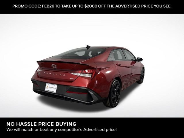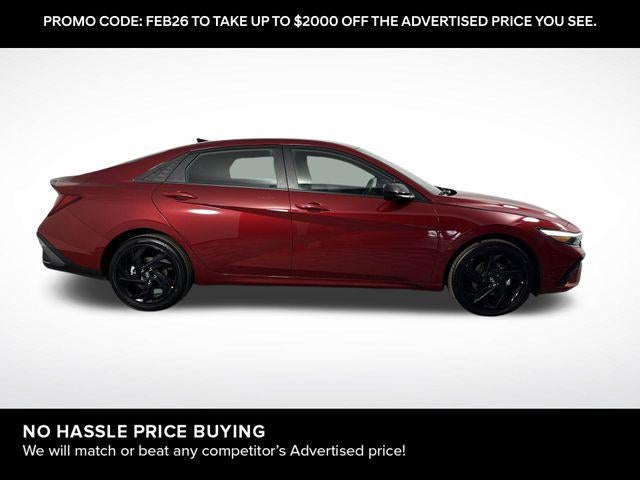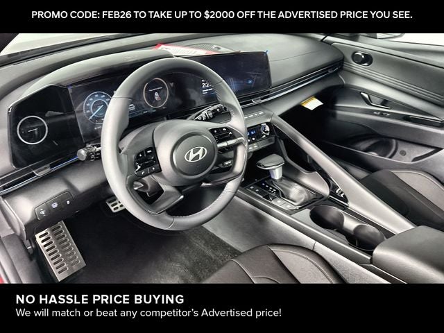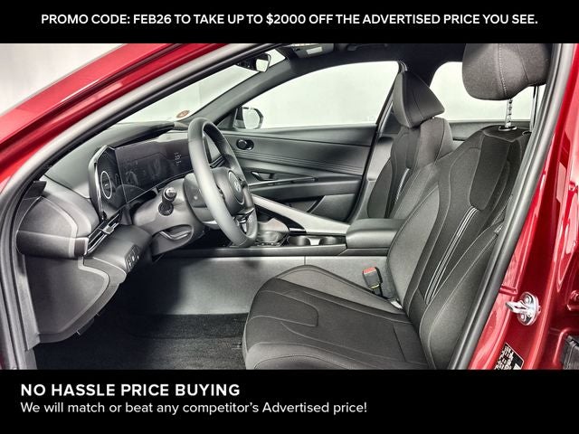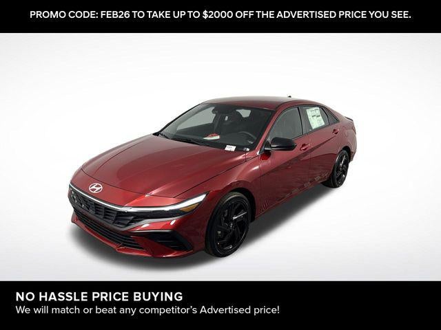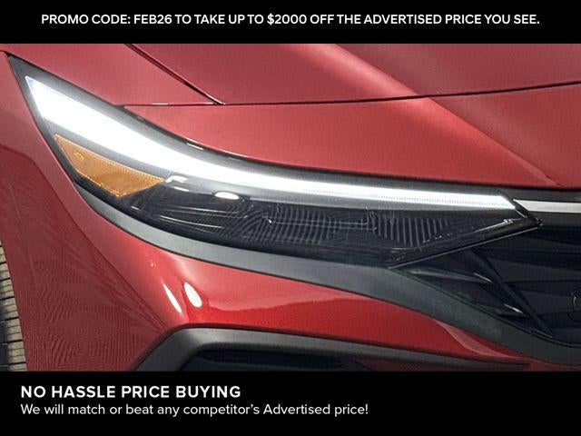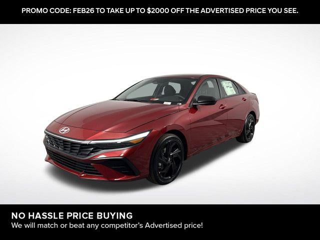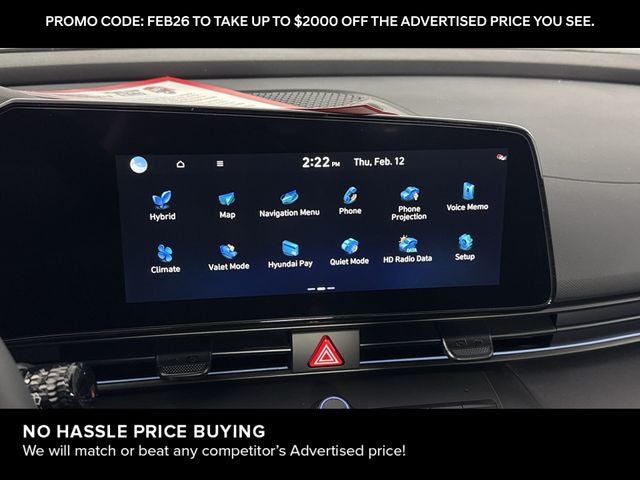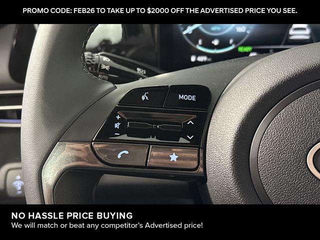 Elantra Hybrid SEL Sport is nicely equipped with Option Group 01, I4, 4-Wheel Disc Brakes, 6 Speakers, ABS brakes, Air Conditioning, Alloy wheels, AM/FM radio: SiriusXM, Apple CarPlay & Android Auto, Auto High-beam Headlights, Automatic temperature control, Brake assist, Bumpers: body-color, Cargo Net, Cargo Side Bins, Cargo Tray, Carpeted Floor Mats, Center Console Tray, Delay-off headlights, Driver door bin, Driver vanity mirror, Dual front impact airbags, Dual front side impact airbags, Electronic Stability Control, Emergency communication system: None, Exterior Parking Camera Rear, First Aid Kit, Front anti-roll bar, Front Bucket Seats, Front Center Armrest, Front dual zone A/C, Front reading lights, Front wheel independent suspension, Fully automatic headlights, Heated door mirrors, Illuminated entry, Low tire pressure warning, Navigation System, Occupant sensing airbag, Outside temperature display, Overhead airbag, Overhead console, Panic alarm, Passenger door bin, Passenger vanity mirror, Power door mirrors, Power steering, Power windows, Premium Cloth Seat Trim, Radio: AM/FM/HD/SiriusXM Display Audio, Rear Bumper Applique, Rear side impact airbag, Rear window defroster, Remote keyless entry, Security system, Speed control, Speed-sensing steering, Spoiler, Steering wheel mounted audio controls, Tachometer, Telescoping steering wheel, Tilt steering wheel, Traction control, Trip computer, Variably intermittent wipers, and Wheels: 17 x 7.0J Gloss Black Dark Finish Alloy. FWD 6-Speed Dual Clutch I4