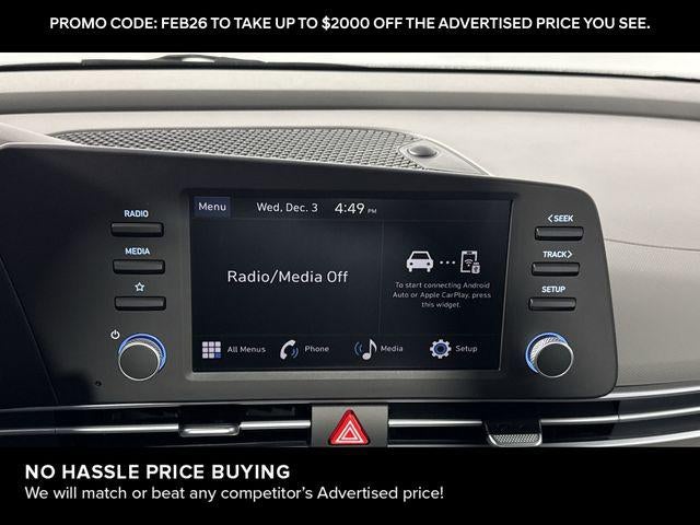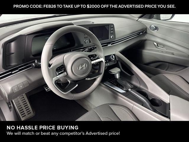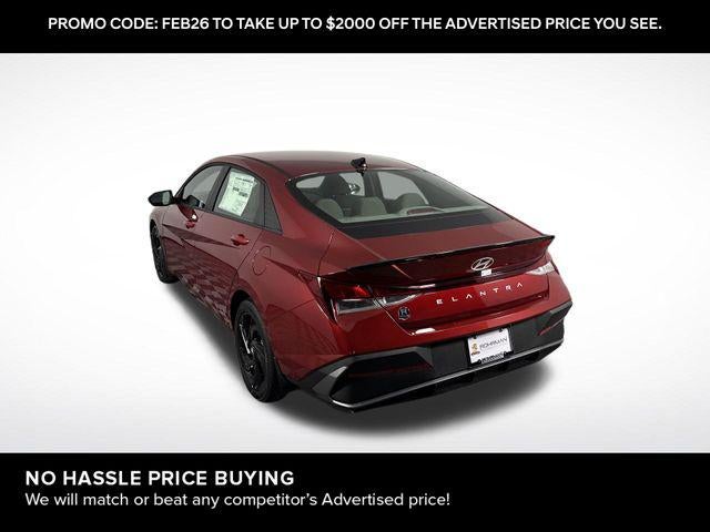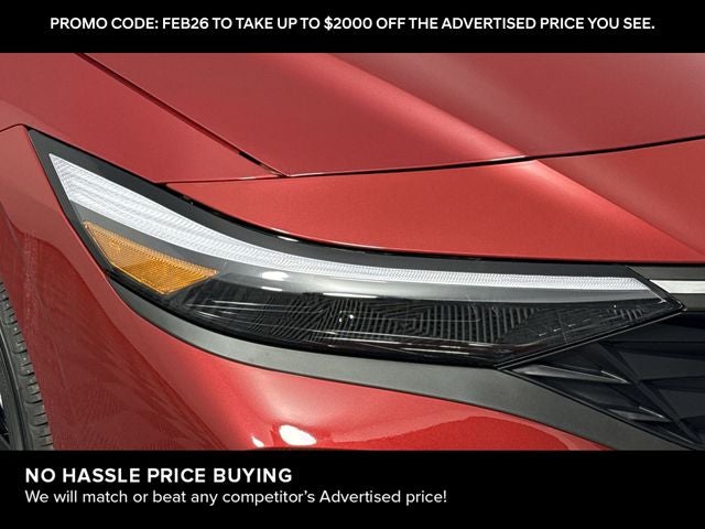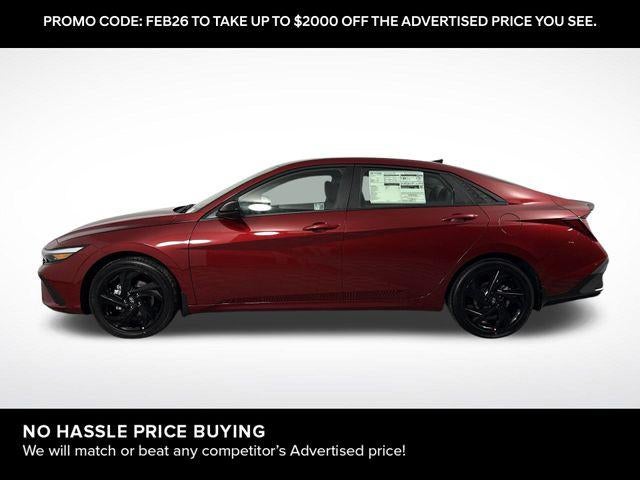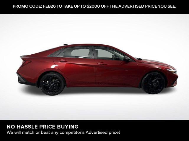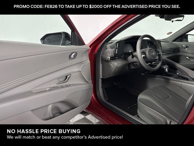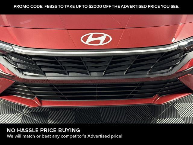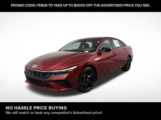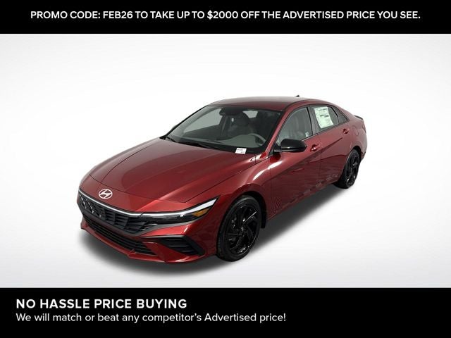 Elantra SEL Sport is nicely equipped with Option Group 01, Elantra SEL Sport, 4D Sedan, I4, CVT, FWD, Ultimate Red, Gray Cloth, 4-Wheel Disc Brakes, 6 Speakers, ABS brakes, Air Conditioning, Alloy wheels, AM/FM radio, Apple CarPlay & Android Auto, Auto High-beam Headlights, Automatic temperature control, Brake assist, Bumpers: body-color, Cargo Net, Cargo Tray, Carpeted Floor Mats, Center Console Tray, Delay-off headlights, Driver door bin, Driver vanity mirror, Dual front impact airbags, Dual front side impact airbags, Electronic Stability Control, Exterior Parking Camera Rear, First Aid Kit, Front anti-roll bar, Front Bucket Seats, Front Center Armrest, Front dual zone A/C, Front reading lights, Front wheel independent suspension, Fully automatic headlights, Illuminated entry, Low tire pressure warning, Mudguards, Occupant sensing airbag, Outside temperature display, Overhead airbag, Overhead console, Panic alarm, Passenger door bin, Passenger vanity mirror, Power door mirrors, Power steering, Power windows, Premium Cloth Seat Trim, Radio: AM/FM/HD Display Audio, Rear side impact airbag, Rear window defroster, Remote keyless entry, Security system, Speed control, Speed-sensing steering, Spoiler, Steering wheel mounted audio controls, Tachometer, Telescoping steering wheel, Tilt steering wheel, Traction control, Trip computer, Variably intermittent wipers, and Wheels: 17 x 7.0J Alloy Gloss Black w/Dark Finish. FWD CVT I4