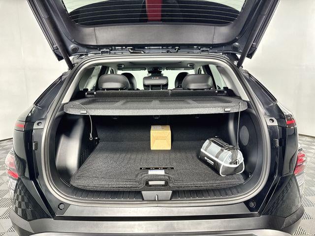 Kona Limited is nicely equipped with Option Group 01, Kona Limited, 4D Sport Utility, I4, 8-Speed Automatic, AWD, Abyss Black Pearl, Black Premium Synthetic, 4-Wheel Disc Brakes, 8 Speakers, ABS brakes, Air Conditioning, Alloy wheels, AM/FM radio: SiriusXM, Apple CarPlay & Android Auto, Auto High-beam Headlights, Auto-dimming Rear-View mirror, Automatic temperature control, Brake assist, Bumpers: body-color, Cargo Net, Cargo Tray, Carpeted Floor Mats, Delay-off headlights, Door Sill Plates, Driver door bin, Driver vanity mirror, Dual front impact airbags, Dual front side impact airbags, Electronic Stability Control, Emergency communication system: None, Four wheel independent suspension, Front anti-roll bar, Front Bucket Seats, Front Center Armrest, Front dual zone A/C, Front reading lights, Fully automatic headlights, H-Tex Seat Trim, Heated and Ventilated Front Bucket Seats, Heated door mirrors, Heated front seats, Heated steering wheel, Illuminated entry, Leather steering wheel, Low tire pressure warning, Navigation System, Occupant sensing airbag, Outside temperature display, Overhead airbag, Panic alarm, Passenger door bin, Passenger vanity mirror, Power door mirrors, Power driver seat, Power Liftgate, Power moonroof, Power steering, Power windows, Radio: AM/FM/SiriusXM/HD Audio System, Rear anti-roll bar, Rear seat center armrest, Rear window defroster, Rear window wiper, Remote keyless entry, Road Assistance Kit, Security system, Speed control, Speed-sensing steering, Split folding rear seat, Spoiler, Steering wheel mounted audio controls, Tachometer, Telescoping steering wheel, Tilt steering wheel, Traction control, Trip computer, Turn signal indicator mirrors, Variably intermittent wipers, Ventilated front seats, and Wheels: 19 x 7.5J Silver/Black Alloy. AWD 8-Speed Automatic I4