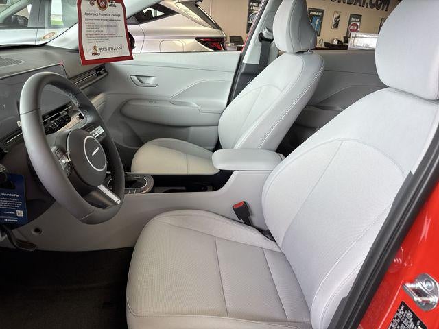 Kona SEL Sport is nicely equipped with Option Group 01, Kona SEL Sport, 4D Sport Utility, 2.0L I4 DOHC 16V, CVT, AWD, Soultronic Orange Pearl, Gray Cloth, 4-Wheel Disc Brakes, 6 Speakers, ABS brakes, Air Conditioning, Alloy wheels, AM/FM radio: SiriusXM, Apple CarPlay & Android Auto, Auto High-beam Headlights, Automatic temperature control, Brake assist, Bumpers: body-color, Cargo Blocks, Cargo Net, Cargo Tray, Carpeted Floor Mats, Cloth Seat Trim, Delay-off headlights, Driver door bin, Driver vanity mirror, Dual front impact airbags, Dual front side impact airbags, Electronic Stability Control, Emergency communication system: None, Exterior Parking Camera Rear, First Aid Kit, Four wheel independent suspension, Front anti-roll bar, Front Bucket Seats, Front Center Armrest, Front dual zone A/C, Front reading lights, Fully automatic headlights, Heated door mirrors, Heated Front Bucket Seats, Heated front seats, Illuminated entry, Leather steering wheel, Low tire pressure warning, Occupant sensing airbag, Outside temperature display, Overhead airbag, Panic alarm, Passenger door bin, Passenger vanity mirror, Power door mirrors, Power steering, Power windows, Radio: AM/FM/SiriusXM/HD Audio System, Rear anti-roll bar, Rear seat center armrest, Rear window defroster, Rear window wiper, Remote keyless entry, Road Assistance Kit, Security system, Severe Weather Kit, Speed control, Speed-sensing steering, Split folding rear seat, Spoiler, Steering wheel mounted audio controls, Tachometer, Telescoping steering wheel, Tilt steering wheel, Traction control, Trip computer, Variably intermittent wipers, and Wheels: 18 x 7.0J Black Alloy. AWD CVT 2.0L I4 DOHC 16V