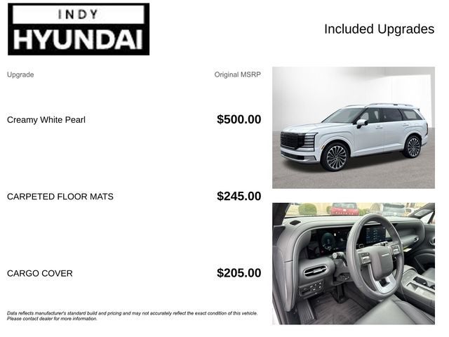 New Price! $2,832 off MSRP! Creamy White Pearl 2026 Hyundai Palisade Hybrid Calligraphy Back up Camera, Best place to buy a used car, Bluetooth®, Buy a used car, New Hyundai dealership near me, New Hyundai for sale near me, Used car deals this weekend, Used car for sale, Used car special, Used car specials, Used cars near Indianapolis, Used cars near me, Palisade Hybrid Calligraphy, 4D Sport Utility, 2.5L Turbocharged GDI 4-Cylinder Hybrid, 6-Speed Automatic, FWD, Creamy White Pearl, Black Leather.