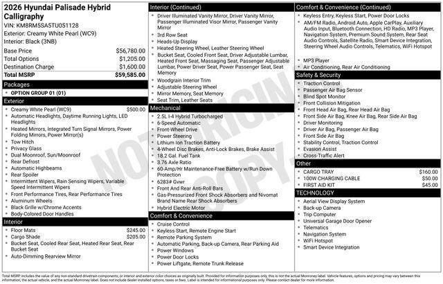 2026 Hyundai Palisade Hybrid Calligraphy