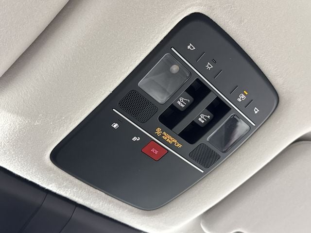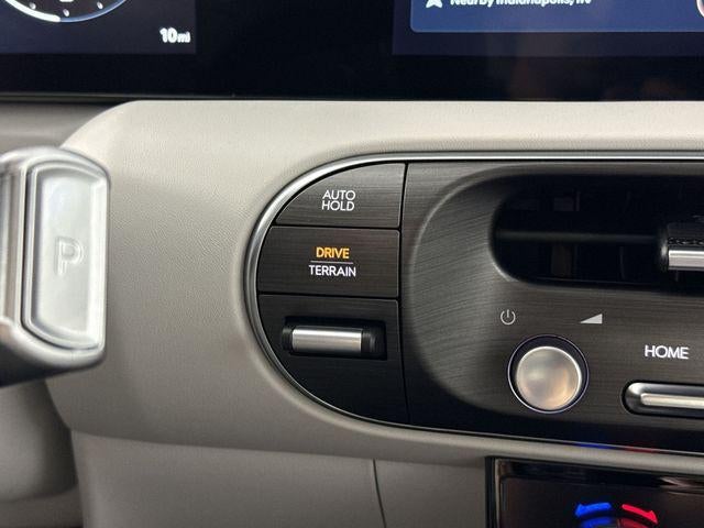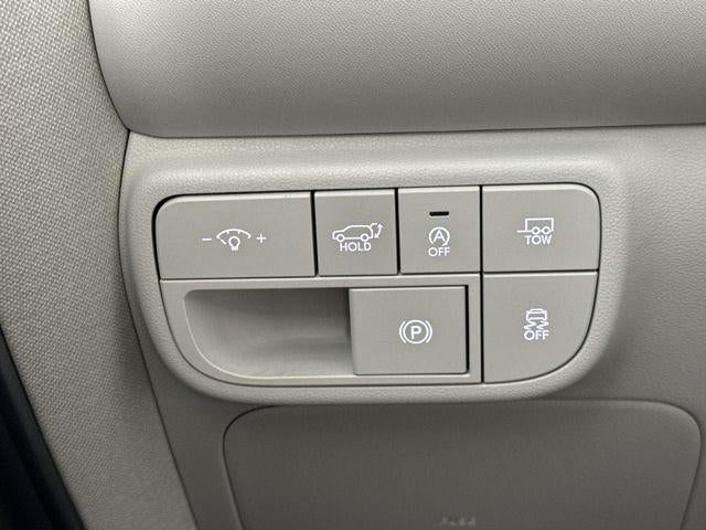 Palisade Calligraphy is nicely equipped with Option Group 01, Palisade Calligraphy, 4D Sport Utility, V6, 8-Speed Automatic, AWD, Ecotronic Gray Pearl, Gray/Navy Leather, 14 Speakers, 3rd row seats: split-bench, 4-Wheel Disc Brakes, ABS brakes, Air Conditioning, Alloy wheels, AM/FM radio: SiriusXM, Apple CarPlay & Android Auto, Audio memory, Auto High-beam Headlights, Auto-dimming door mirrors, Auto-dimming Rear-View mirror, Auto-leveling suspension, Automatic temperature control, Brake assist, Bumpers: body-color, Cargo Net, Cargo Tray, Carpeted Floor Mats, Compass, Delay-off headlights, Driver door bin, Driver vanity mirror, Dual front impact airbags, Dual front side impact airbags, Electronic Stability Control, Exterior Parking Camera Rear, First Aid Kit, Four wheel independent suspension, Front anti-roll bar, Front Bucket Seats, Front Center Armrest, Front dual zone A/C, Front reading lights, Fully automatic headlights, Garage door transmitter: HomeLink, Genuine wood console insert, Genuine wood dashboard insert, Heads-Up Display, Heated door mirrors, Heated front seats, Heated rear seats, Heated steering wheel, HVAC memory, Illuminated entry, Knee airbag, Leather steering wheel, Low tire pressure warning, Memory seat, Mud Guards, Navigation System, Occupant sensing airbag, Outside temperature display, Overhead airbag, Overhead console, Panic alarm, Passenger door bin, Passenger vanity mirror, Power door mirrors, Power driver seat, Power Liftgate, Power moonroof, Power passenger seat, Power steering, Power windows, Premium Nappa Leather Seat Trim, Radio data system, Radio: Infotainment Navigation System, Rain sensing wipers, Rear air conditioning, Rear anti-roll bar, Rear audio controls, Rear reading lights, Rear side impact airbag, Rear window defroster, Rear window wiper, Reclining 3rd row seat, Remote keyless entry, Security system, Speed control, Split folding rear seat, Spoiler, Steering wheel mounted audio controls, Tachometer, Telescoping steering wheel, Tilt steering wheel, Traction control, Trip computer, Turn signal indicator mirrors, Variably intermittent wipers, Ventilated front seats, Ventilated rear seats, and Wheels: 21 x 8.5J Alloy. AWD 8-Speed Automatic V6