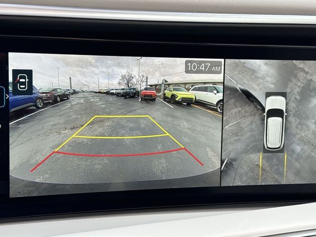Palisade SEL Premium is nicely equipped with Option Group 01, 3rd row seats: split-bench, 4-Wheel Disc Brakes, 8 Speakers, ABS brakes, Air Conditioning, Alloy wheels, AM/FM radio: SiriusXM, Apple CarPlay & Android Auto, Audio memory, Auto High-beam Headlights, Auto-dimming door mirrors, Auto-dimming Rear-View mirror, Auto-leveling suspension, Automatic temperature control, Brake assist, Bumpers: body-color, Cargo Mat, Up Seatback, Cargo Net, Carpeted Floor Mats, Compass, Delay-off headlights, Driver door bin, Driver vanity mirror, Dual front impact airbags, Dual front side impact airbags, Electronic Stability Control, Emergency communication system: None, Exterior Parking Camera Rear, First Aid Kit, Four wheel independent suspension, Front anti-roll bar, Front Bucket Seats, Front Center Armrest, Front dual zone A/C, Front reading lights, Fully automatic headlights, Garage door transmitter: HomeLink, H-Tex Leatherette Seat Trim, Heated and Ventilated Front Bucket Seats, Heated door mirrors, Heated front seats, Heated rear seats, Heated steering wheel, HVAC memory, Illuminated entry, Knee airbag, Leather steering wheel, Low tire pressure warning, Memory seat, Mud Guards, Navigation System, Occupant sensing airbag, Outside temperature display, Overhead airbag, Overhead console, Panic alarm, Passenger door bin, Passenger vanity mirror, Power door mirrors, Power driver seat, Power Liftgate, Power moonroof, Power passenger seat, Power steering, Power windows, Radio data system, Radio: Infotainment Navigation System, Rear air conditioning, Rear anti-roll bar, Rear audio controls, Rear reading lights, Rear side impact airbag, Rear window defroster, Rear window wiper, Reclining 3rd row seat, Remote keyless entry, Roadside Assistance Kit, Security system, Speed control, Split folding rear seat, Spoiler, Steering wheel mounted audio controls, Tachometer, Telescoping steering wheel, Tilt steering wheel, Traction control, Trip computer, Turn signal indicator mirrors, Variably intermittent wipers, Ventilated front seats, Ventilated rear seats, and Wheels: 18 x 8.0J Alloy. AWD 7 Passenger 8-Speed Automatic V6