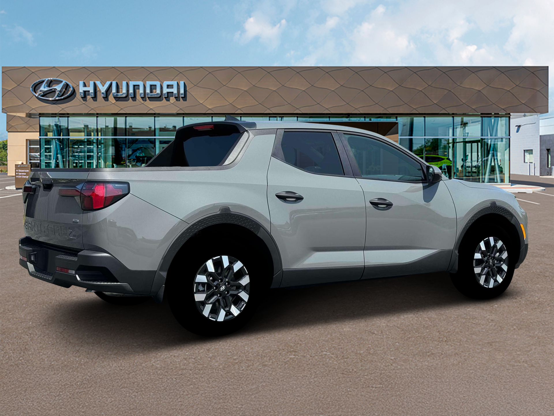 Santa Cruz SE is nicely equipped with Option Group 01, Santa Cruz SE, 4D Crew Cab, 2.5L I4, 8-Speed Automatic with SHIFTRONIC, AWD, Hampton Gray, Black Cloth, 18 x 7.5J Alloy Wheels, 4-Wheel Disc Brakes, 4.081 Axle Ratio, 6 Speakers, ABS brakes, Air Conditioning, Alloy wheels, AM/FM radio: SiriusXM, Apple CarPlay & Android Auto, Auto High-beam Headlights, Auto-leveling suspension, Brake assist, Bumpers: body-color, Camera Mount, Carpeted Floor Mats, Compass, Delay-off headlights, Driver door bin, Driver vanity mirror, Dual front impact airbags, Dual front side impact airbags, Electronic Stability Control, Emergency communication system: Bluelink+, Exterior Parking Camera Rear, Fender Flares, First Aid Kit, Four wheel independent suspension, Front anti-roll bar, Front Bucket Seats, Front Center Armrest, Front reading lights, Fully automatic headlights, Illuminated entry, Low tire pressure warning, Occupant sensing airbag, Outside temperature display, Overhead airbag, Overhead console, Panic alarm, Passenger door bin, Passenger vanity mirror, Power door mirrors, Power steering, Power windows, Radio data system, Radio: AM/FM/HD Audio System, Rear anti-roll bar, Rear side impact airbag, Rear step bumper, Rear window defroster, Remote keyless entry, Security system, Speed control, Speed-sensing steering, Split folding rear seat, Spoiler, Stain & Odor Resistant Cloth Seat Trim, Steering wheel mounted audio controls, Tachometer, Telescoping steering wheel, Tilt steering wheel, Traction control, Trip computer, and Variably intermittent wipers. AWD 8-Speed Automatic with SHIFTRONIC 2.5L I4