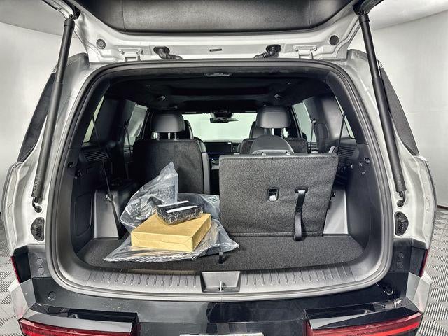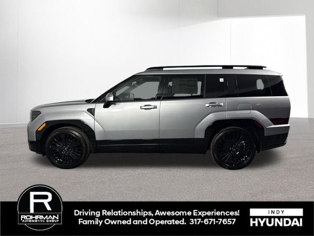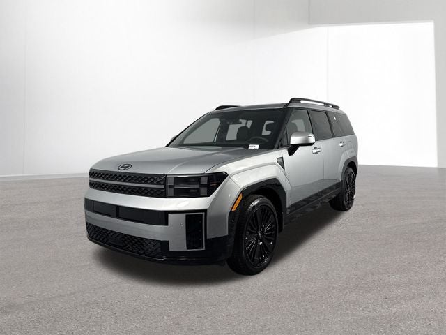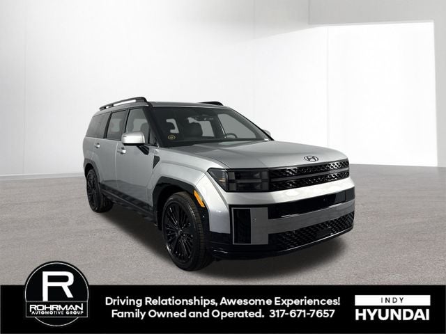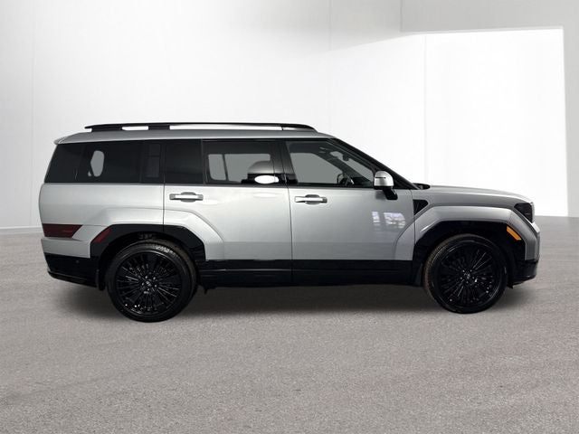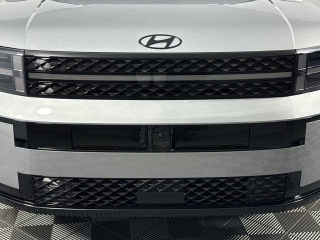Santa Fe Hybrid Calligraphy is nicely equipped with Option Group 01, Santa Fe Hybrid Calligraphy, 4D Sport Utility, I4, 6-Speed Automatic with Shiftronic, FWD, Shimmering Silver, Black Leather, 12 Speakers, 3rd row seats: bench, 4-Wheel Disc Brakes, ABS brakes, Air Conditioning, Alloy wheels, AM/FM radio: SiriusXM, Apple CarPlay & Android Auto, Auto High-beam Headlights, Auto-dimming Rear-View mirror, Automatic temperature control, Brake assist, Bumpers: body-color, Cargo Net, Carpeted Floor Mats, Delay-off headlights, Driver door bin, Driver vanity mirror, Dual front impact airbags, Dual front side impact airbags, Electronic Stability Control, Emergency communication system, Exterior Parking Camera Rear, First Aid Kit, Four wheel independent suspension, Front anti-roll bar, Front Bucket Seats, Front Center Armrest, Front dual zone A/C, Front reading lights, Fully automatic headlights, Garage door transmitter: HomeLink, Heads-Up Display, Heated door mirrors, Heated front seats, Heated rear seats, Heated steering wheel, Illuminated entry, Knee airbag, Leather steering wheel, Low tire pressure warning, Memory seat, Mudguards, Navigation System, Occupant sensing airbag, Outside temperature display, Overhead airbag, Overhead console, Panic alarm, Passenger door bin, Passenger vanity mirror, Power door mirrors, Power driver seat, Power Liftgate, Power moonroof, Power passenger seat, Power steering, Power windows, Quilted Premium Nappa Leather Seat Trim, Radio: AM/FM/HD Bose Premium Audio System, Rain sensing wipers, Rear anti-roll bar, Rear side impact airbag, Rear window defroster, Rear window wiper, Remote keyless entry, Roadside Assistance Kit, Security system, Speed control, Speed-sensing steering, Split folding rear seat, Spoiler, Steering wheel mounted audio controls, Tachometer, Telescoping steering wheel, Tilt steering wheel, Traction control, Trip computer, Turn signal indicator mirrors, Variably intermittent wipers, Ventilated front seats, and Wheels: 20 x 8.5J Unique Dark Finish Alloy. FWD 6-Speed Automatic with Shiftronic I4