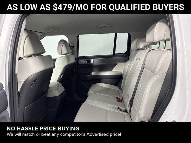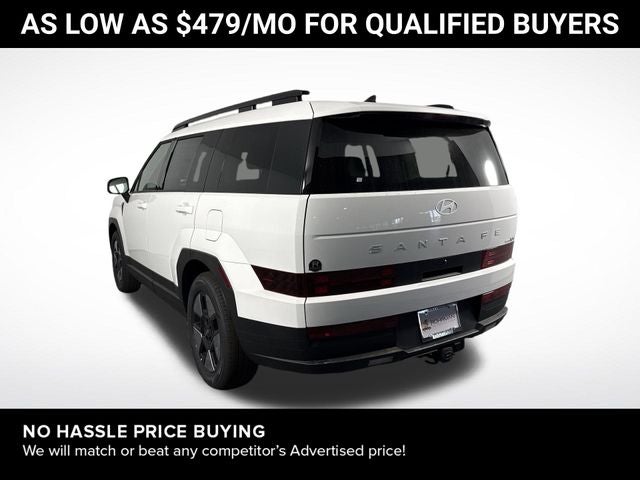 Santa Fe Hybrid SEL is nicely equipped with Option Group 01, I4, 18 x 7.5J Alloy Wheels, 3rd row seats: bench, 4-Wheel Disc Brakes, 6 Speakers, ABS brakes, Air Conditioning, Alloy wheels, AM/FM radio: SiriusXM, Apple CarPlay & Android Auto, Auto High-beam Headlights, Automatic temperature control, Brake assist, Bumpers: body-color, Cargo Net, Cargo Tray, Carpeted Floor Mats, Delay-off headlights, Driver door bin, Driver vanity mirror, Dual front impact airbags, Dual front side impact airbags, Electronic Stability Control, Emergency communication system, Exterior Parking Camera Rear, First Aid Kit, Four wheel independent suspension, Front anti-roll bar, Front Bucket Seats, Front Center Armrest, Front dual zone A/C, Front reading lights, Fully automatic headlights, H-Tex Leatherette Seat Trim, Heated door mirrors, Heated Front Bucket Seats, Heated front seats, Illuminated entry, Knee airbag, Leather steering wheel, Low tire pressure warning, Occupant sensing airbag, Outside temperature display, Overhead airbag, Overhead console, Panic alarm, Passenger door bin, Passenger vanity mirror, Power door mirrors, Power driver seat, Power Liftgate, Power steering, Power windows, Radio: AM/FM/HD Display Audio, Rear anti-roll bar, Rear seat center armrest, Rear side impact airbag, Rear window defroster, Rear window wiper, Remote keyless entry, Security system, Speed control, Speed-sensing steering, Split folding rear seat, Spoiler, Steering wheel mounted audio controls, Tachometer, Telescoping steering wheel, Tilt steering wheel, Tow Hitch, Traction control, Trip computer, Turn signal indicator mirrors, and Variably intermittent wipers. AWD 6-Speed Automatic with Shiftronic I4