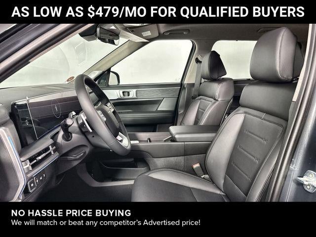 Santa Fe Limited is nicely equipped with Option Group 01, Santa Fe Limited, 4D Sport Utility, 2.5L I4, 8-Speed Automatic with SHIFTRONIC, AWD, Ecotronic Gray, Black Leather, 12 Speakers, 3rd row seats: bench, 4-Wheel Disc Brakes, ABS brakes, Air Conditioning, All Season Fitted Liners, Alloy wheels, AM/FM radio: SiriusXM, Apple CarPlay & Android Auto, Auto High-beam Headlights, Auto-dimming Rear-View mirror, Automatic temperature control, Brake assist, Bumpers: body-color, Cargo Cover/Screen, Cargo Net, Cargo Tray, Carpeted Floor Mats, Delay-off headlights, Driver door bin, Driver vanity mirror, Dual front impact airbags, Dual front side impact airbags, Electronic Stability Control, Emergency communication system, Exterior Parking Camera Rear, First Aid Kit, Four wheel independent suspension, Front anti-roll bar, Front Bucket Seats, Front Center Armrest, Front dual zone A/C, Front reading lights, Fully automatic headlights, Garage door transmitter: HomeLink, Heated door mirrors, Heated front seats, Heated rear seats, Heated steering wheel, Illuminated entry, Knee airbag, Leather Seat Trim, Leather steering wheel, Low tire pressure warning, Memory seat, Mudguards, Navigation System, Occupant sensing airbag, Outside temperature display, Overhead airbag, Overhead console, Panic alarm, Passenger door bin, Passenger vanity mirror, Power door mirrors, Power driver seat, Power Liftgate, Power moonroof, Power passenger seat, Power steering, Power windows, Radio: AM/FM/HD Bose Premium Audio System, Rain sensing wipers, Rear anti-roll bar, Rear side impact airbag, Rear window defroster, Rear window wiper, Remote keyless entry, Security system, Speed control, Speed-sensing steering, Split folding rear seat, Spoiler, Steering wheel mounted audio controls, Tachometer, Telescoping steering wheel, Tilt steering wheel, Traction control, Trip computer, Turn signal indicator mirrors, Variably intermittent wipers, Ventilated front seats, and Wheels: 20 x 8.5J Alloy. AWD 8-Speed Automatic with SHIFTRONIC 2.5L I4