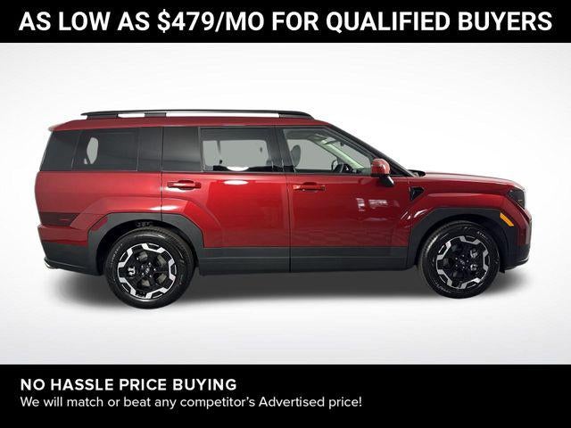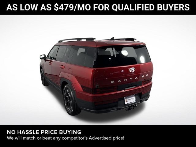 Santa Fe SEL is nicely equipped with Option Group 01, AWD, Black Premium Synthetic, 18 x 7.5J Alloy Wheels, 3rd row seats: bench, 4-Wheel Disc Brakes, 6 Speakers, ABS brakes, Air Conditioning, Alloy wheels, AM/FM radio: SiriusXM, Apple CarPlay & Android Auto, Auto High-beam Headlights, Automatic temperature control, Brake assist, Bumpers: body-color, Cargo Blocks, Cargo Net, Cargo Tray, Carpeted Floor Mats, Delay-off headlights, Driver door bin, Driver vanity mirror, Dual front impact airbags, Dual front side impact airbags, Electronic Stability Control, Emergency communication system, Exterior Parking Camera Rear, First Aid Kit, Four wheel independent suspension, Front anti-roll bar, Front Bucket Seats, Front Center Armrest, Front dual zone A/C, Front reading lights, Fully automatic headlights, H-Tex Leatherette Seat Trim, Heated door mirrors, Heated Front Bucket Seats, Heated front seats, Illuminated entry, Knee airbag, Leather steering wheel, Low tire pressure warning, Occupant sensing airbag, Outside temperature display, Overhead airbag, Overhead console, Panic alarm, Passenger door bin, Passenger vanity mirror, Power door mirrors, Power driver seat, Power Liftgate, Power steering, Power windows, Radio: AM/FM/HD Display Audio, Rear anti-roll bar, Rear seat center armrest, Rear side impact airbag, Rear window defroster, Rear window wiper, Remote keyless entry, Roadside Assistance Kit, Security system, Speed control, Speed-sensing steering, Split folding rear seat, Spoiler, Steering wheel mounted audio controls, Tachometer, Telescoping steering wheel, Tilt steering wheel, Tow Hitch, Traction control, Trip computer, Turn signal indicator mirrors, and Variably intermittent wipers. AWD 8-Speed Automatic with SHIFTRONIC 2.5L I4