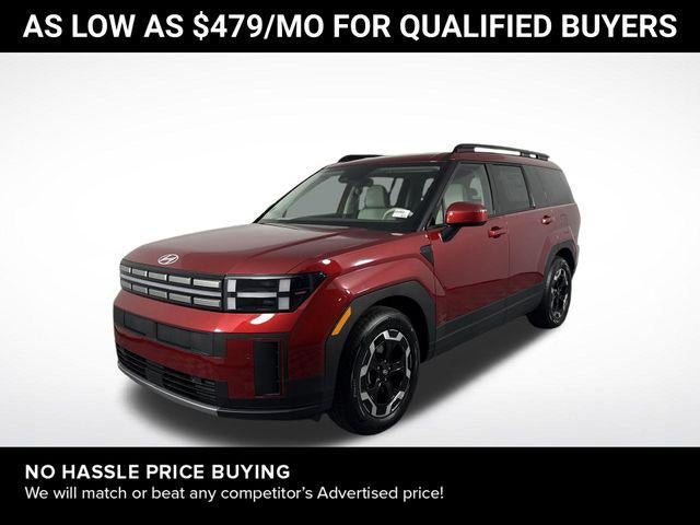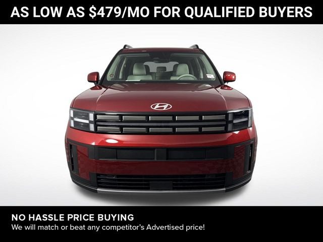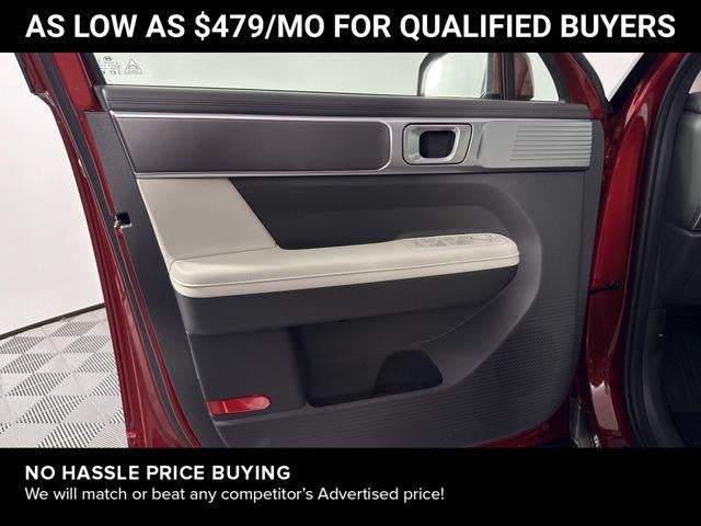 Santa Fe SEL is nicely equipped with Option Group 01, AWD, Gray Premium Synthetic, 18 x 7.5J Alloy Wheels, 3rd row seats: bench, 4-Wheel Disc Brakes, 6 Speakers, ABS brakes, Air Conditioning, All Season Fitted Liners, Alloy wheels, AM/FM radio: SiriusXM, Apple CarPlay & Android Auto, Auto High-beam Headlights, Automatic temperature control, Brake assist, Bumpers: body-color, Cargo Blocks, Cargo Net, Cargo Tray, Carpeted Floor Mats, Delay-off headlights, Driver door bin, Driver vanity mirror, Dual front impact airbags, Dual front side impact airbags, Electronic Stability Control, Emergency communication system, Exterior Parking Camera Rear, First Aid Kit, Four wheel independent suspension, Front anti-roll bar, Front Bucket Seats, Front Center Armrest, Front dual zone A/C, Front reading lights, Fully automatic headlights, H-Tex Leatherette Seat Trim, Heated door mirrors, Heated Front Bucket Seats, Heated front seats, Illuminated entry, Knee airbag, Leather steering wheel, Low tire pressure warning, Occupant sensing airbag, Outside temperature display, Overhead airbag, Overhead console, Panic alarm, Passenger door bin, Passenger vanity mirror, Power door mirrors, Power driver seat, Power Liftgate, Power steering, Power windows, Radio: AM/FM/HD Display Audio, Rear anti-roll bar, Rear seat center armrest, Rear side impact airbag, Rear window defroster, Rear window wiper, Remote keyless entry, Roof Rack Crossbars, Security system, Speed control, Speed-sensing steering, Split folding rear seat, Spoiler, Steering wheel mounted audio controls, Tachometer, Telescoping steering wheel, Tilt steering wheel, Traction control, Trip computer, Turn signal indicator mirrors, and Variably intermittent wipers. AWD 8-Speed Automatic with SHIFTRONIC 2.5L I4