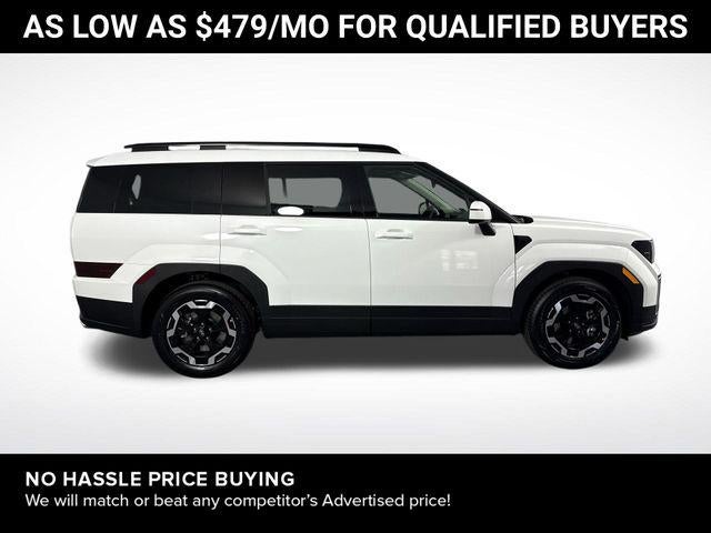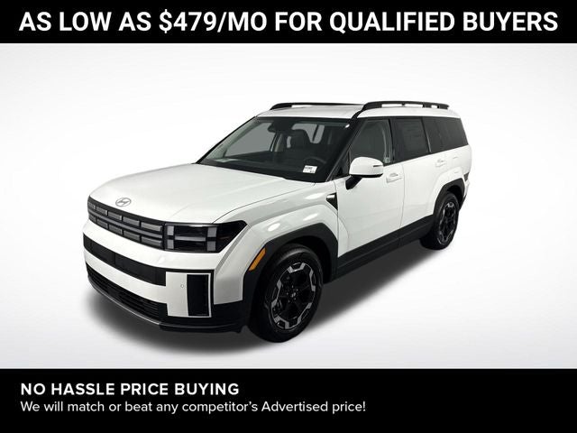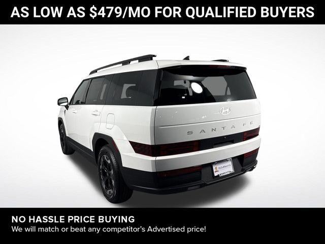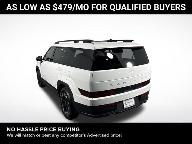 Santa Fe SEL is nicely equipped with Option Group 01, AWD, Black Premium Synthetic, 18 x 7.5J Alloy Wheels, 3rd row seats: bench, 4-Wheel Disc Brakes, 6 Speakers, ABS brakes, Air Conditioning, All Season Fitted Liners, Alloy wheels, AM/FM radio: SiriusXM, Apple CarPlay & Android Auto, Auto High-beam Headlights, Automatic temperature control, Brake assist, Bumpers: body-color, Cargo Blocks, Cargo Net, Cargo Tray, Carpeted Floor Mats, Delay-off headlights, Driver door bin, Driver vanity mirror, Dual front impact airbags, Dual front side impact airbags, Electronic Stability Control, Emergency communication system, Exterior Parking Camera Rear, First Aid Kit, Four wheel independent suspension, Front anti-roll bar, Front Bucket Seats, Front Center Armrest, Front dual zone A/C, Front reading lights, Fully automatic headlights, H-Tex Leatherette Seat Trim, Heated door mirrors, Heated Front Bucket Seats, Heated front seats, Illuminated entry, Knee airbag, Leather steering wheel, Low tire pressure warning, Occupant sensing airbag, Outside temperature display, Overhead airbag, Overhead console, Panic alarm, Passenger door bin, Passenger vanity mirror, Power door mirrors, Power driver seat, Power Liftgate, Power steering, Power windows, Radio: AM/FM/HD Display Audio, Rear anti-roll bar, Rear seat center armrest, Rear side impact airbag, Rear window defroster, Rear window wiper, Remote keyless entry, Roof Rack Crossbars, Security system, Speed control, Speed-sensing steering, Split folding rear seat, Spoiler, Steering wheel mounted audio controls, Tachometer, Telescoping steering wheel, Tilt steering wheel, Traction control, Trip computer, Turn signal indicator mirrors, and Variably intermittent wipers. AWD 8-Speed Automatic with SHIFTRONIC 2.5L I4
