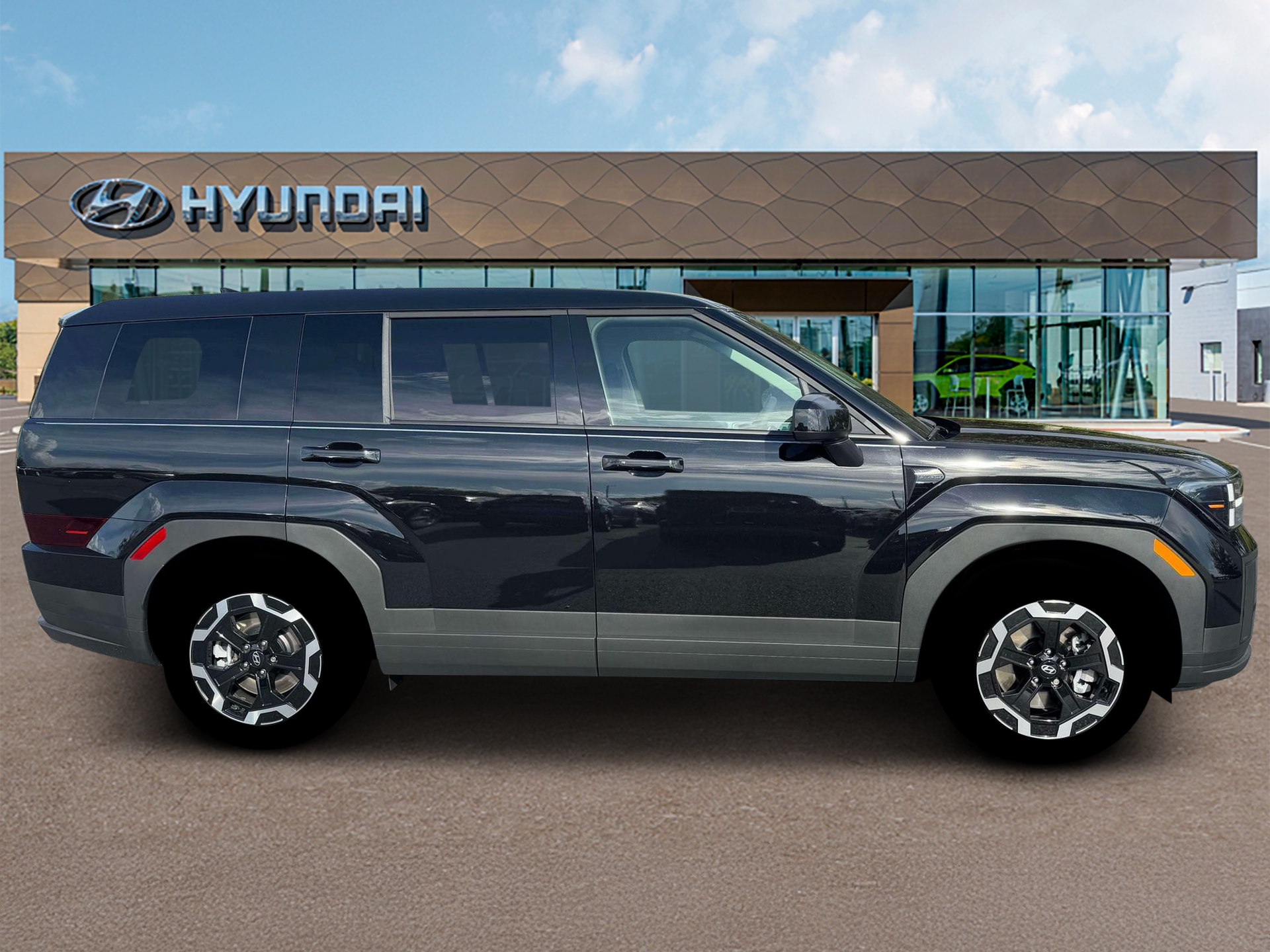 Santa Fe SE is nicely equipped with Option Group 01, Santa Fe SE, 4D Sport Utility, 2.5L I4, 8-Speed Automatic with SHIFTRONIC, FWD, Phantom Black, Gray Cloth, 18 x 7.5J Alloy Wheels, 3rd row seats: bench, 4-Wheel Disc Brakes, 6 Speakers, ABS brakes, Air Conditioning, Alloy wheels, AM/FM radio: SiriusXM, Apple CarPlay & Android Auto, Auto High-beam Headlights, Brake assist, Bumpers: body-color, Carpeted Floor Mats, Delay-off headlights, Driver door bin, Driver vanity mirror, Dual front impact airbags, Dual front side impact airbags, Electronic Stability Control, Emergency communication system, Exterior Parking Camera Rear, Four wheel independent suspension, Front anti-roll bar, Front Bucket Seats, Front Center Armrest, Front reading lights, Fully automatic headlights, Heated door mirrors, Illuminated entry, Knee airbag, Leather steering wheel, Low tire pressure warning, Occupant sensing airbag, Outside temperature display, Overhead airbag, Overhead console, Panic alarm, Passenger door bin, Passenger vanity mirror, Power door mirrors, Power Liftgate, Power steering, Power windows, Radio: AM/FM/HD Display Audio, Rear anti-roll bar, Rear seat center armrest, Rear side impact airbag, Rear window defroster, Rear window wiper, Remote keyless entry, Security system, Speed control, Speed-sensing steering, Split folding rear seat, Spoiler, Steering wheel mounted audio controls, Tachometer, Telescoping steering wheel, Tilt steering wheel, Traction control, Trip computer, Variably intermittent wipers, and YES Essentials Stain-Resistant Cloth Seat Trim. FWD 8-Speed Automatic with SHIFTRONIC 2.5L I4