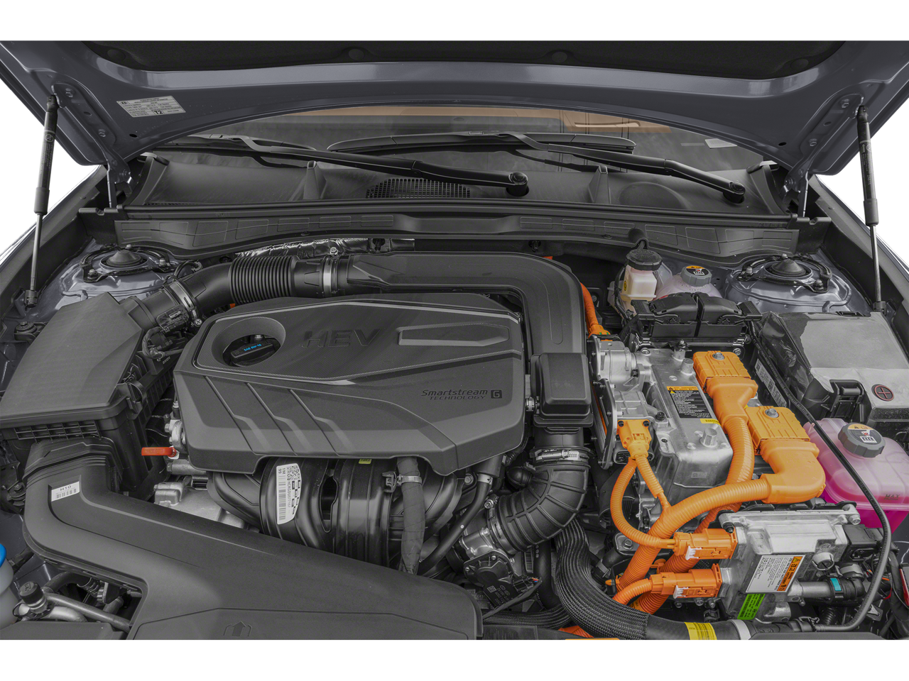 Sonata Hybrid Limited is nicely equipped with Option Group 01, Sonata Hybrid Limited, 4D Sedan, I4, 6-Speed Automatic with Shiftronic, FWD, Portofino Gray, Gray Leather, 12 Speakers, 17 x 7.0J Aluminum Alloy Wheels, 4-Wheel Disc Brakes, ABS brakes, Air Conditioning, Alloy wheels, AM/FM radio: SiriusXM, Apple CarPlay & Android Auto, Auto High-beam Headlights, Auto-dimming Rear-View mirror, Automatic temperature control, Brake assist, Bumpers: body-color, Cargo Net, Cargo Tray, Carpeted Floor Mats, Delay-off headlights, Driver door bin, Driver vanity mirror, Dual front impact airbags, Dual front side impact airbags, Electronic Stability Control, Emergency communication system: None, First Aid Kit, Four wheel independent suspension, Front anti-roll bar, Front Bucket Seats, Front Center Armrest, Front dual zone A/C, Front reading lights, Fully automatic headlights, Heads-Up Display, Heated and Ventilated Front Bucket Seats, Heated door mirrors, Heated front seats, Heated steering wheel, Illuminated entry, Knee airbag, Lane Departure Warning System, Leather steering wheel, Leather-Trimmed Seating Surfaces, Low tire pressure warning, Memory seat, Navigation System, Occupant sensing airbag, Outside temperature display, Overhead airbag, Overhead console, Panic alarm, Passenger door bin, Passenger vanity mirror, Power door mirrors, Power driver seat, Power moonroof, Power passenger seat, Power steering, Power windows, Radio data system, Radio: AM/FM/HD/SiriusXM/MP3/Navigation, Rain sensing wipers, Rear anti-roll bar, Rear Bumper Applique, Rear seat center armrest, Rear side impact airbag, Rear window defroster, Remote keyless entry, Security system, Speed control, Speed-sensing steering, Speed-Sensitive Wipers, Split folding rear seat, Spoiler, Steering wheel mounted audio controls, Tachometer, Telescoping steering wheel, Tilt steering wheel, Traction control, Trip computer, Variably intermittent wipers, and Ventilated front seats. FWD 6-Speed Automatic with Shiftronic I4
