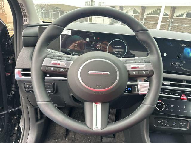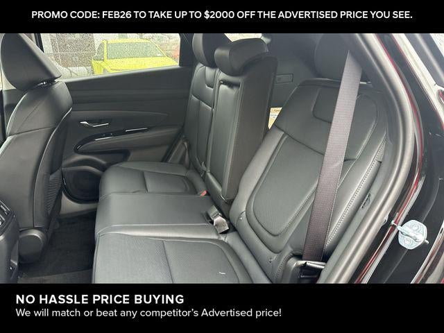 Tucson Hybrid Limited is nicely equipped with Option Group 01, Tucson Hybrid Limited, 4D Sport Utility, 1.6L Turbo GDI 4-Cylinder, 6-Speed Automatic, AWD, Ash Black, Black Leather, 4-Wheel Disc Brakes, 8 Speakers, ABS brakes, Air Conditioning, Alloy wheels, AM/FM radio: SiriusXM, Apple CarPlay & Android Auto, Auto High-beam Headlights, Auto-dimming Rear-View mirror, Automatic temperature control, Brake assist, Bumpers: body-color, Cargo Net, Cargo Tray, Carpeted Floor Mats, Delay-off headlights, Driver door bin, Driver vanity mirror, Dual front impact airbags, Dual front side impact airbags, Electronic Stability Control, Emergency communication system: None, First Aid Kit, Four wheel independent suspension, Front and Rear Mudguards, Front anti-roll bar, Front Bucket Seats, Front Center Armrest, Front dual zone A/C, Front reading lights, Fully automatic headlights, Garage door transmitter: HomeLink, Heads-Up Display, Heated and Ventilated Front Bucket Seats, Heated door mirrors, Heated front seats, Heated rear seats, Heated steering wheel, Illuminated entry, Leather steering wheel, Leather-Trimmed Seat Trim, Low tire pressure warning, Memory seat, Navigation System, Occupant sensing airbag, Outside temperature display, Overhead airbag, Overhead console, Panic alarm, Passenger door bin, Passenger vanity mirror, Power door mirrors, Power driver seat, Power Liftgate, Power moonroof, Power passenger seat, Power steering, Power windows, Radio data system, Radio: Bose Premium w/AM/FM/HD Audio System, Rain sensing wipers, Rear anti-roll bar, Rear reading lights, Rear seat center armrest, Rear side impact airbag, Rear window defroster, Rear window wiper, Remote keyless entry, Roadside Assistance Kit, Security system, Speed control, Split folding rear seat, Spoiler, Steering wheel mounted audio controls, Tachometer, Telescoping steering wheel, Tilt steering wheel, Traction control, Trip computer, Turn signal indicator mirrors, Variably intermittent wipers, Ventilated front seats, and Wheels: 19 x 7.5J Alloy. AWD 6-Speed Automatic 1.6L Turbo GDI 4-Cylinder