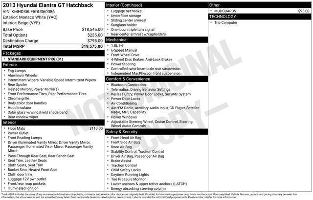 Priced below KBB Fair Purchase Price! Monaco White 2013 Hyundai Elantra GT FWD 1.8L 4-Cylinder DOHC 16V Dual CVVT