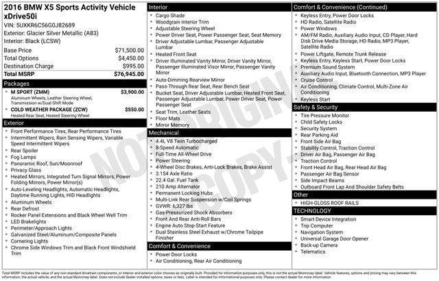 Glacier Silver Metallic 2016 BMW X5 AWD xDrive50i 4.4L V8 DOHC 32V Twin Turbocharged