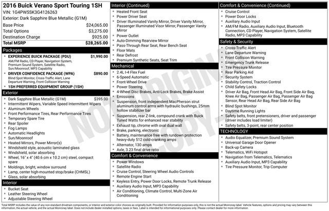 Black Metallic 2016 Buick Verano FWD Sport Touring Group ECOTEC 2.4L I4 SIDI DOHC VVT