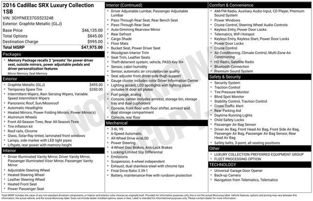 Graphite Metallic 2016 Cadillac SRX AWD Luxury 3.6L V6 DGI DOHC VVT