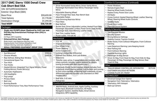 Onyx Black 2017 GMC Sierra 1500 4WD Denali EcoTec3 5.3L V8