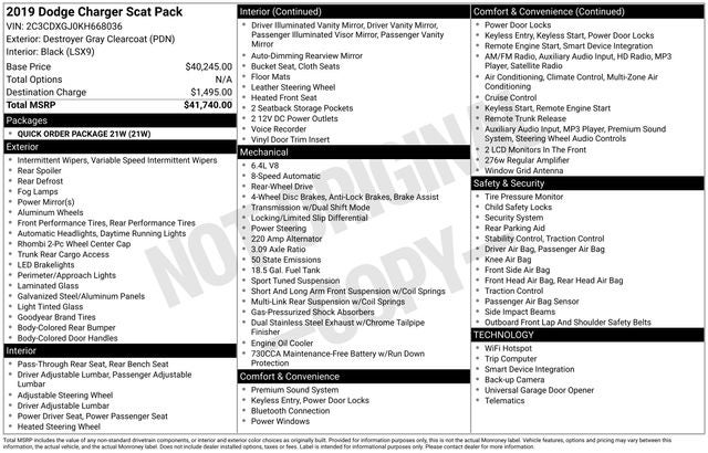 Destroyer Gray Clearcoat 2019 Dodge Charger RWD R/T Scat Pack SRT HEMI 6.4L V8 MDS