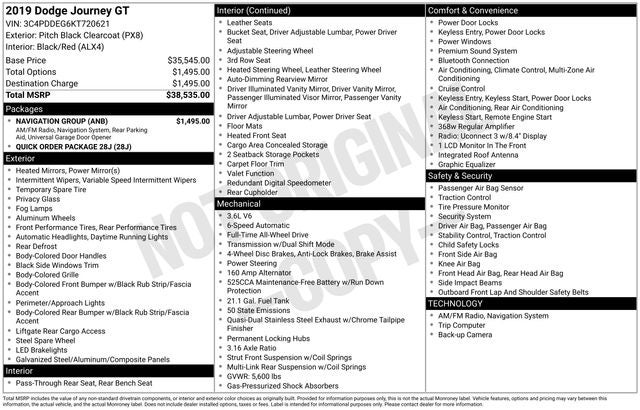 Clean CARFAX. Pitch Black Clearcoat 2019 Dodge Journey AWD GT 3.6L V6 24V VVT