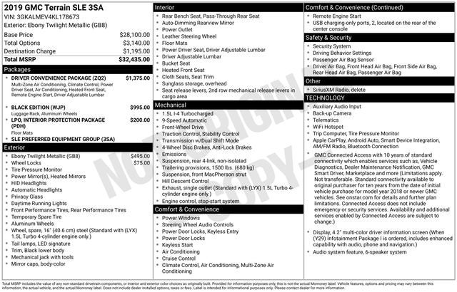 Ebony Twilight Metallic 2019 GMC Terrain FWD SLE 1.5L DOHC
