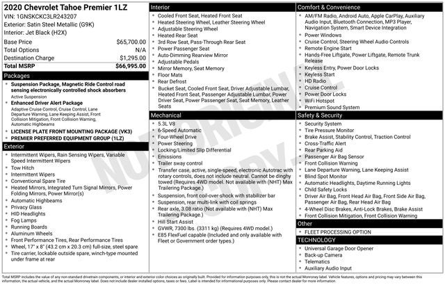 Satin Steel Metallic 2020 Chevrolet Tahoe 4WD Premier EcoTec3 5.3L V8