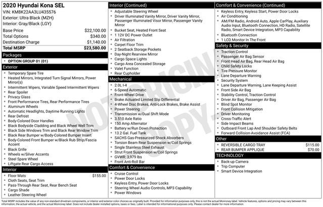 This online window sticker is provided for informational purposes only. Vehicle features, options, pricing and other information are subject to change. See your Hyundai dealer and the Monroney label affixed to the actual vehicle for the most up-to-date specifications and information.