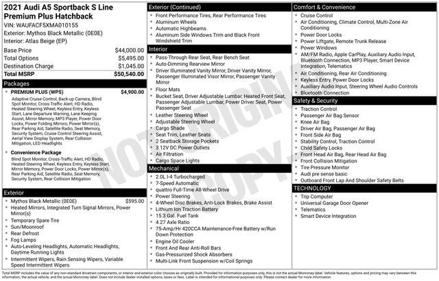 Clean CARFAX. Mythos Black Metallic 2021 Audi A5 Sportback quattro 45 S line Premium Plus 2.0L 4-Cylinder TFSI
