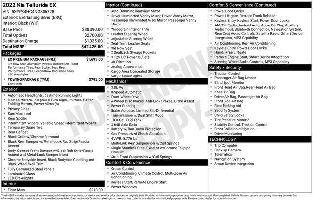 CARFAX One-Owner. Clean CARFAX. Everlasting Silver 2022 Kia Telluride FWD EX 3.8L V6 DOHC