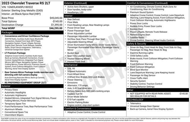2023 Chevrolet Traverse RS Sterling Gray Metallic FWD 3.6L V6 SIDI VVT