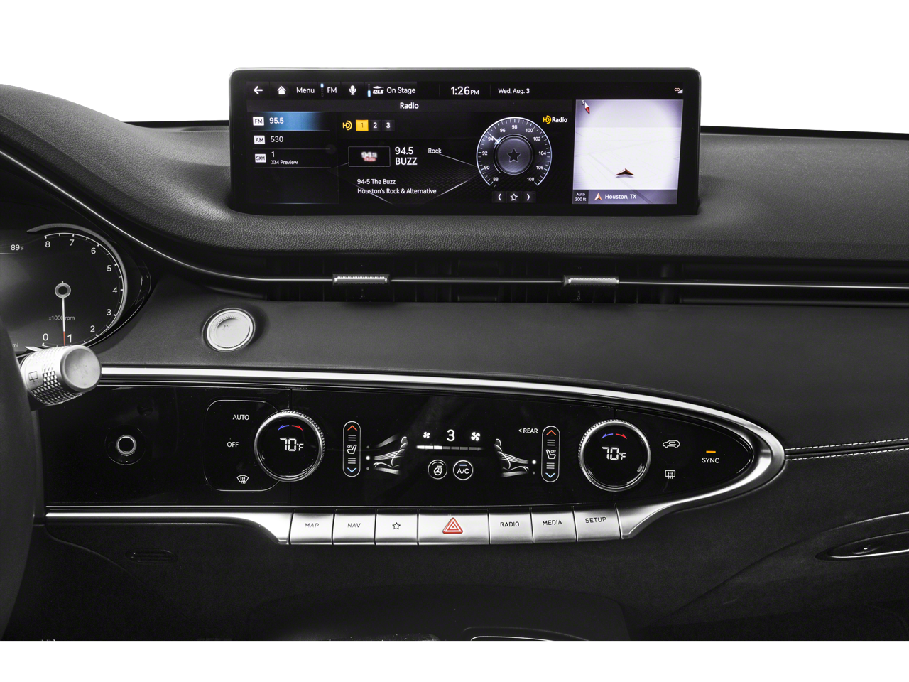 - Radio: AM/FM/SiriusXM/HD Premium Audio System -inc: navigation system, 9 speakers, internal amplifier, 14.5" HD display screen, Apple CarPlay and Android Auto, Bluetooth® hands-free phone system w/audio streaming, 4 USB ports and Genesis Connected Services
