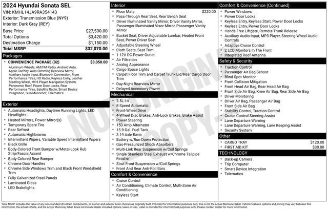 Priced below KBB Fair Purchase Price! CARFAX One-Owner. Clean CARFAX. Transmission Blue 2024 Hyundai Sonata FWD SEL I4